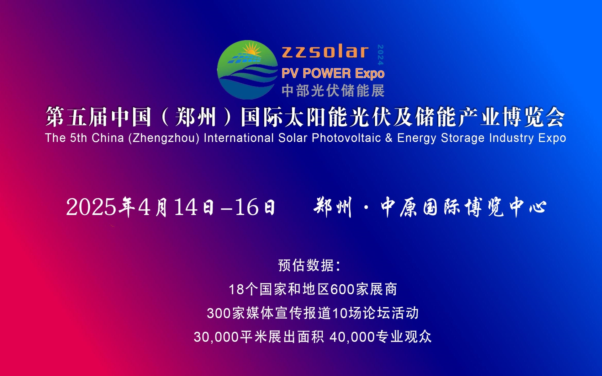 河南是人口大省,农业大省,用能大省,分布式光伏在河南拥有巨大的发展空间和潜力。为推动中部地区光储产业发展,搭建零距离合作交流平台,“中国(郑州)国际太阳能光伏及储能产业展览会(简称:ZZSOLAR2025)”定于2025年4月14-16日在郑州中原国际博览中心举行,为响应市场需求和政府大力支持,大会以“聚焦双碳目标、推动新能发展”为主题蓄势待发,为企业提供一场高质量展示交流盛会。届时诚邀您莅临现场参观、参展!