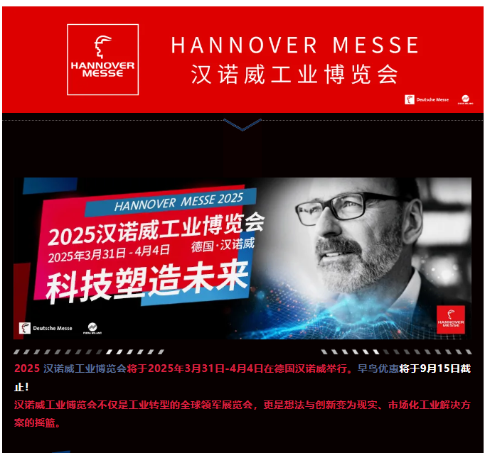 德国汉诺威工业展览会(HANNOVER MESSE)是世界工业贸易的“晴雨表”!全球工业技术发展的风向标。始创于1947年8月,每年定期在汉诺威国际展览中心举办,被公认为是联系全世界技术领域和商业领域的重要国际活动之一,引领着世界工业的创新与发展。再次证明了自身作为全球向工业4.0转型的决定性主场的地位,价值提升的创新网络、新型人机合作以及日益融入生产运营的人工智能,这些仍然是数字化和连通性的关键特征,并且也是在汉诺威的首次亮相。