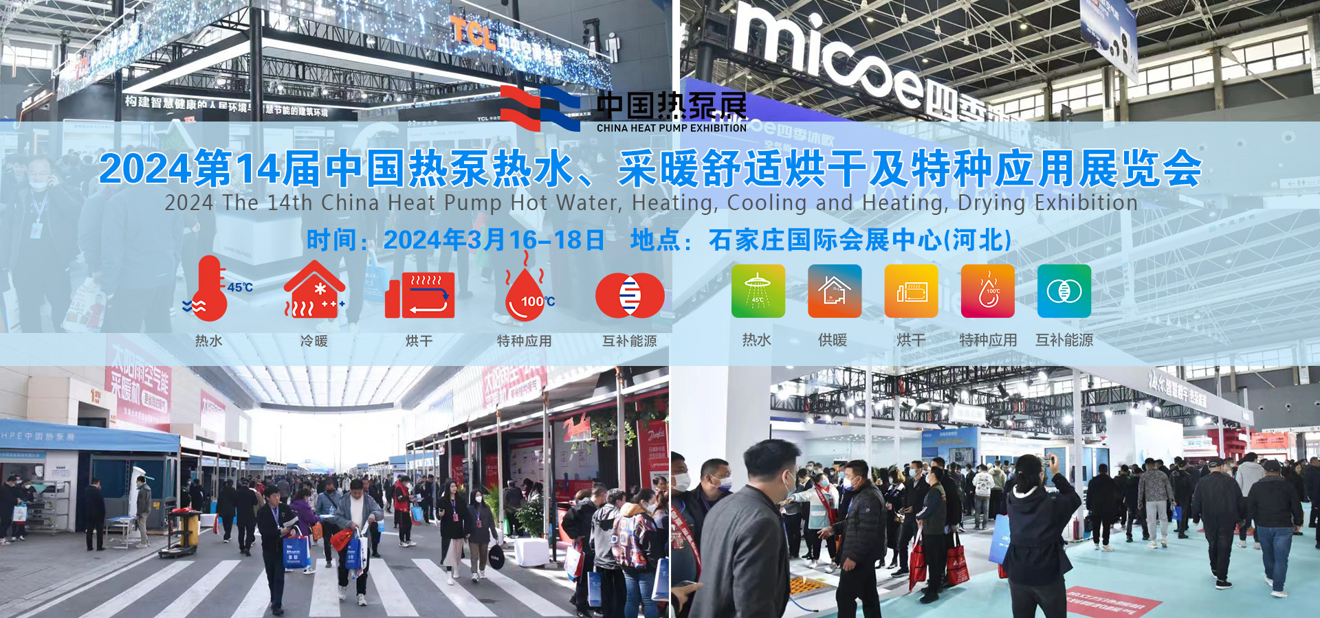 第14届(2024)HPE中国热泵展,将于2024年3月16-18日在石家庄国际会展中心(河北)隆重举办。展览面积更大,展商更多,展品更全。全面融合展览展示、年度创新产品评选表彰、高峰论坛、新品发布、采购大会、培训交流等各种活动形式,服务双碳目标下的热泵及关联产业智竞未来,着力打造热泵及关联产业向全国乃至全世界进行展示和宣传的最前沿平台!四、参展厂商以空气源热泵热水、采暖、特种应用的上下游产业链为主,兼顾其他各类清洁能源供暖、通风、净水相关产业链400家左右。