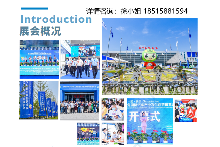 展会概况 长三角地区已发展成为国内最具发展活力的区域之一,汽车产业更是长三角地区的支柱产业,并形成全国六大汽车产业集群之一。作为对接中西部、承接南北的前沿阵地,安徽省近年来与沪苏浙加强协同,积极融入长三角地区汽车产业体系,并签署《国家级长三角区域车联网先导区合作共建协议》。为助力长三角汽车产业发展,安庆市将新能源汽车产业作为创新驱动、转型升级的突破口和主导产业,出台了《汽车千亿产业引领工程实施方案(2021-2025年)》致力于打造千亿汽车产业集群,并在以汽车为标志的“安庆制造”新业态的建立取得关键性突破,以三家整车厂为龙头,带动上下游关联企业,逐步形成完整汽车产业链。