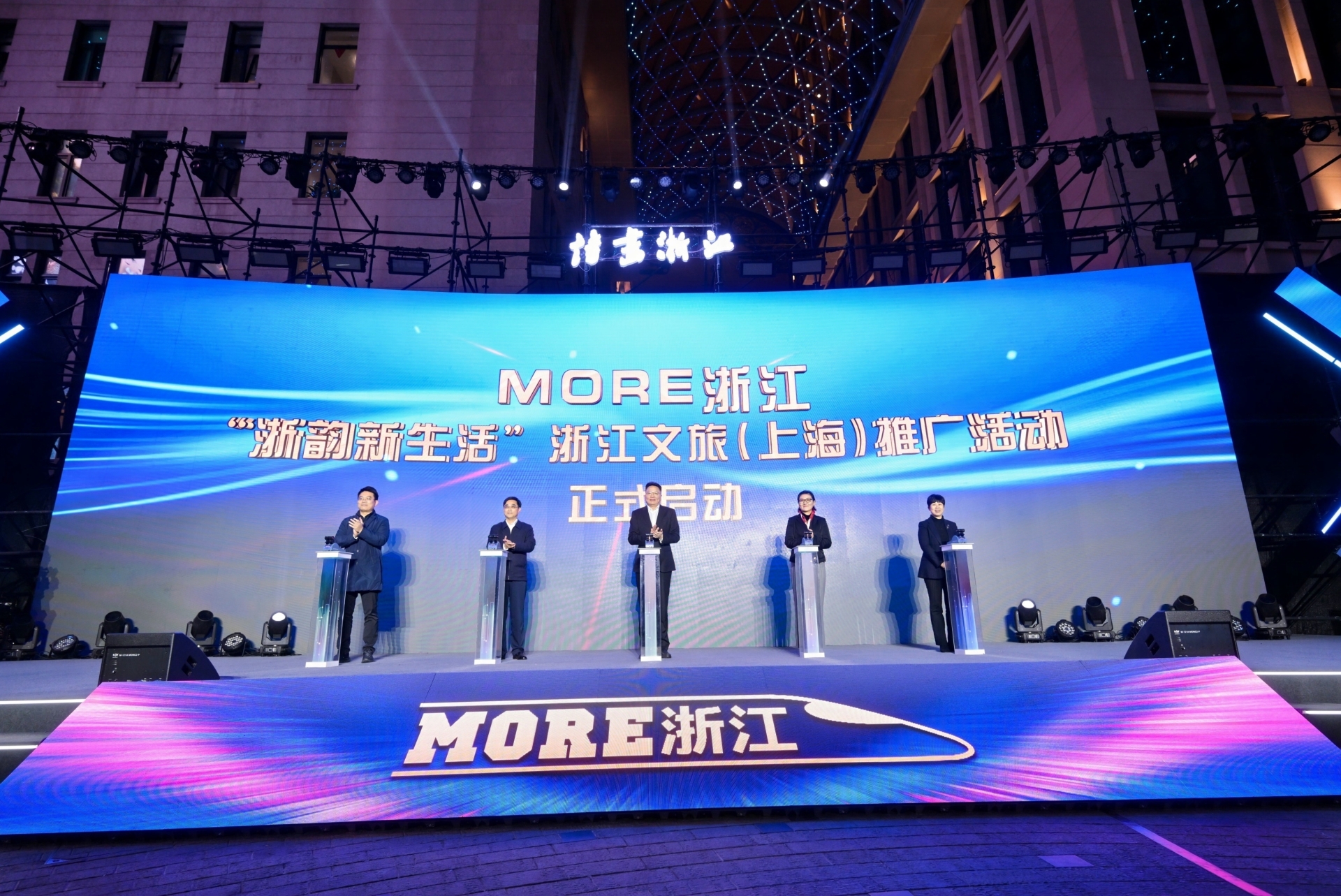 为抓住沪苏湖高铁开通机遇,做好元旦、春节旅游市场预热,进一步挖掘浙江入境旅游市场潜力,12月10日,由浙江省文化广电和旅游厅主办,浙江省各市文化广电和旅游局承办,上海市文化和旅游局、中国铁路上海局集团有限公司支持的“浙韵新生活”浙江文旅(上海)推广活动在上海外滩·中央广场正式启动。本次活动不仅让上海市民沉浸式感受到时尚潮流的浙江形象,更为浙江文旅产业在高铁时代高质量发展按下了“加速键”。浙江省文化广电和旅游厅、上海市文化和旅游局、中国铁路上海局集团有限公司相关领导出席了开幕式,浙沪两地文旅部门代表、中国铁路上海局集团有限公司相关负责人、旅行商、媒体达人代表近150人等参加了活动。