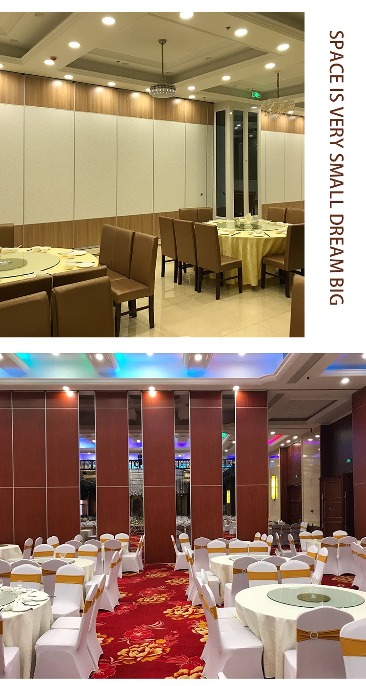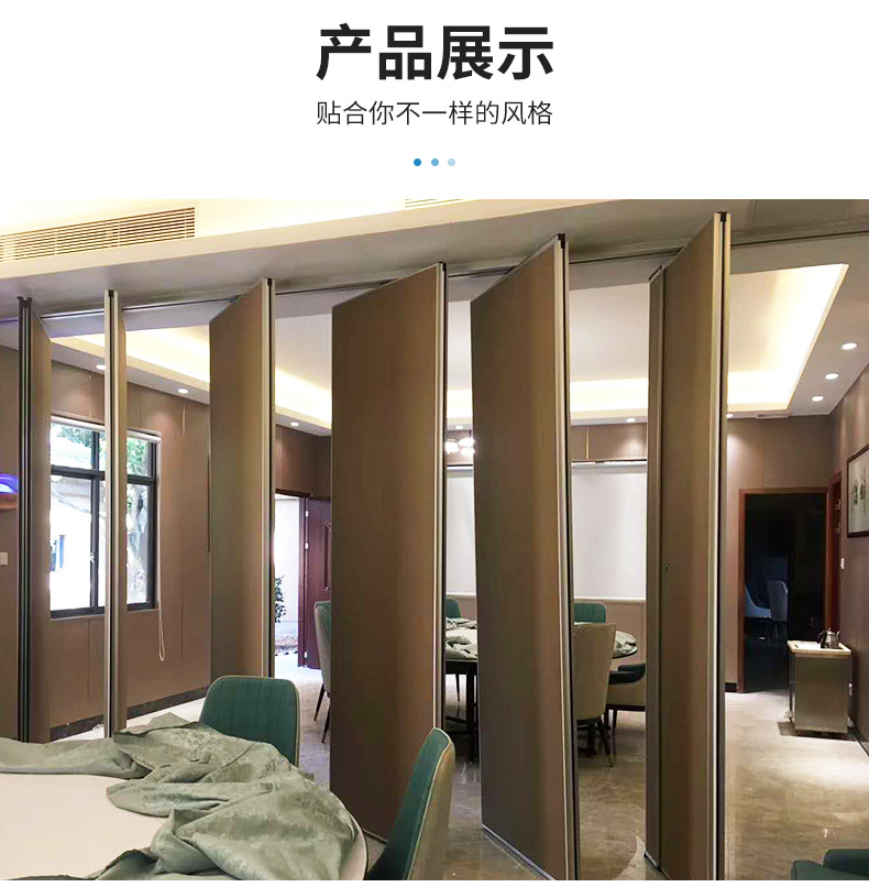 活动隔断具有高隔音、防火、可移动、操作简单等特点。极为适合星级酒店宴会厅、高档酒楼包间、高级写字楼会议室等场所进行空间间隔的使用。目前,活动隔断、固定隔断系列产品已经广泛适用在酒店、宾馆、多功能厅、会议室、宴会厅、写字楼、展厅、金融机构、政府办公楼、医院、工厂等多种场合。 活动隔断可以分为:拼装式活动隔断、推移式活动隔断、折叠式活动隔断、悬挂式活动隔断。活动隔断是一种根据需要随时把大空间分割成小空间或把小空间连成大空间、具有一般墙体功能的活动墙。活动隔断具有以下特点: 1.无地轨悬挂:地板无轨道,只需将轨道安装于天花板上; 2.稳定安全:隔断后稳固可靠,不易摆动; 3.隔音环保:隔音效果好,最大隔音系数可达53dB; 4.隔热节能:隔热性能优良,根据不同入座率,把大空间分割成小空间,以降低空调电耗; 5.高效防火:采用高效防火材料制作,防火性能良好; 6.美观大方:表面任意装饰,可与室内统一装饰效果; 7.收放灵活:隔板收放自如,推动灵活,一个人就可以完成隔断整个过程; 8.收藏方便:收板时,隔板可以隐藏在专用储柜中,不影响整体美观; 9.应用广泛:可应用于会议厅、展览厅、餐厅、高洁净工厂和办公室等场所;