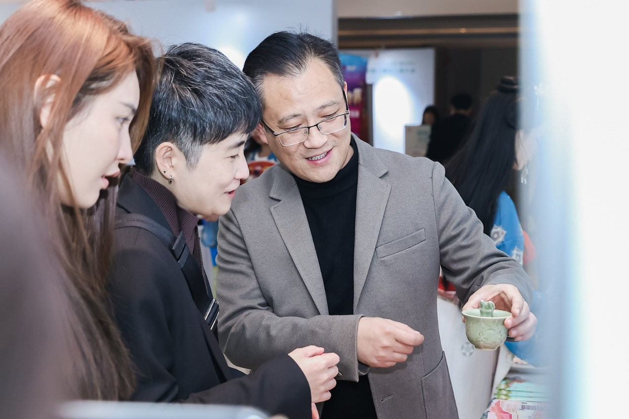 推介会场外,陕西特色文创精品展带来了陕西各地精美的文旅产品,来自陕文投集团的文物仿制品,西咸新区的手筑茯茶,榆林市的绥德石雕、米脂小米咖啡,安康市的白河百花蜜,铜川市的耀州瓷,渭南市的大荔冬枣等,引起了浙江观众的浓厚兴趣,大家纷纷咨询了解产品文化特色,品尝购物。
