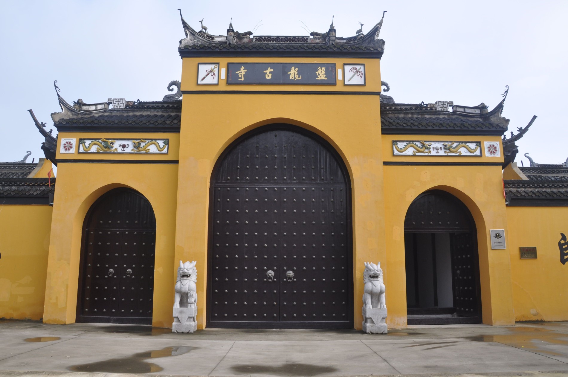 盘龙古寺位于江苏省盐城市阜宁县合利大街北首,始建于明朝万历二十六(1598)戊戌年。合利原名蛤蜊港,濒临黄海。传说这里常起海啸,致使生灵涂炭,民不聊生。一盛夏之夜,海啸肆虐,顿时渔民哭喊震天,哀号动地。一时天降祥龙,恶斗海魔,一番乌云滚滚,电闪雷鸣之后,海魔败遁。祥龙受伤后盘踞于蛤蜊港口一株大榆树下,歇息至天蒙蒙亮,随风向东南而去。此后,这里风平浪静,生民安乐,商贾云集,成为射阳河入海处著名渔港。时人为答谢祥龙,便在祥龙盘歇之处建盘龙庵,供出海渔民、烧盐民众、来往商贾、地方百姓烧香拜佛,以求平安。